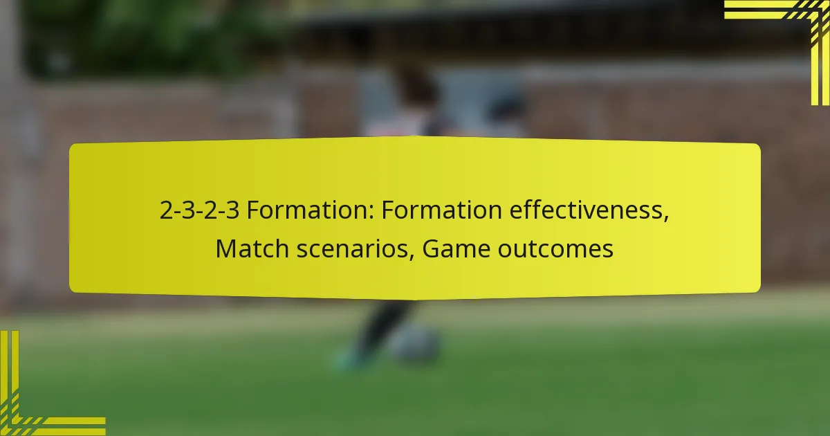 The effectiveness of the 2-3-2-3 formation can vary based on the opponent and match context. It tends to work well against teams that play a more defensive style, as it allows for greater ball control and offensive pressure. In such scenarios, the formation can help break down organised defences.